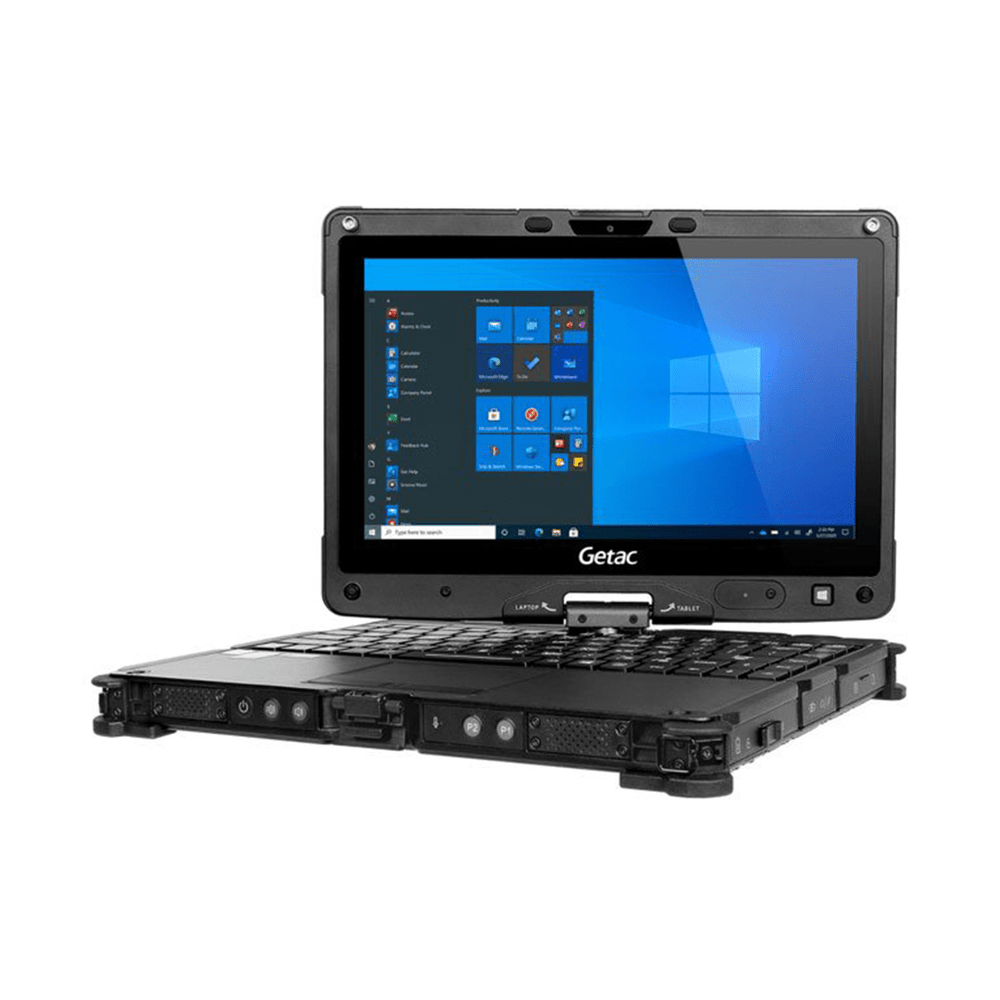 Getac V110G4, Convertible 2-in-1 Fully Rugged Laptop, 11.6" HD (1366 x 768), Sunlight-Readable (800 nits), Windows 10 Pro. (not upgradeable to Windows 11 Pro.), 8GB upgradeable, 256GB SSD upgradeable, English US Backlit Keyboard, FHD Webcam, 8MP Rear Camera., 1x Battery, AC Adapter.