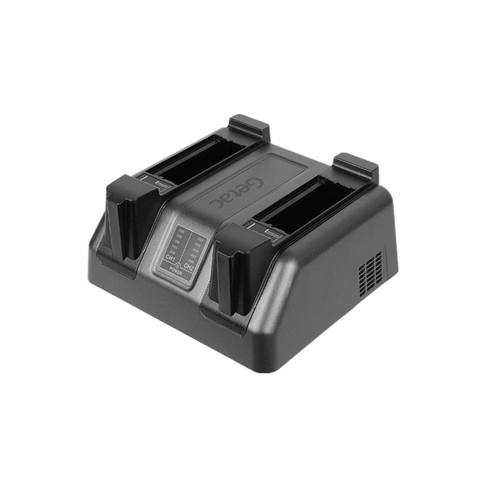The Getac UX10G2 Dual Bay Battery Charger is designed to charge up to two UX10G2 batteries simultaneously.