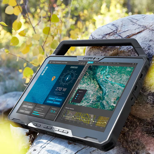 Keep your hands warm and safe without sacrificing productivity thanks to a glove touch capable true 12" 16:10 aspect ratio screen with 13% moreactive screen area. With the biggest screen areain a 12" fully-rugged tablet, and a 1200-nit direct-sunlight-viewable-display, everywhere outside can be your office.